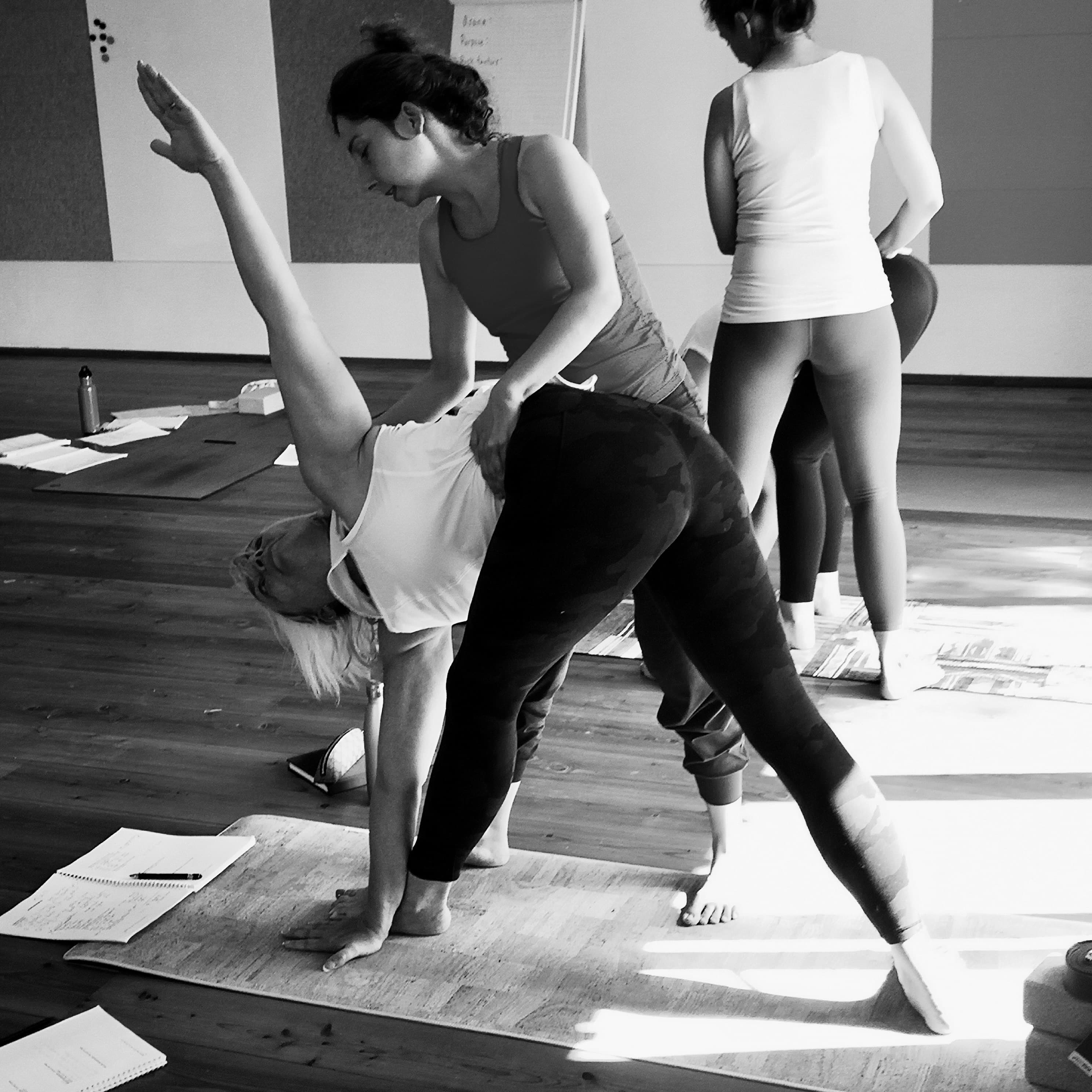 In our teacher training / advanced training we not only practice the physical aspects of Ashtanga Vinyasa and Hatha Yoga (asana), but also a variety of yogic techniques such as mindfulness, breath work (pranayama), meditation and chanting mantras. We study anatomy, physiology, biomechanics and neuroplasticity in relation to yoga practice. Through self-reflection and the study of yoga texts, philosophy and psychology, we begin to integrate yoga practice into daily life. In addition, we explore best practices related to teaching yoga: sequencing, pacing, classroom environment and management, and the use of cueing - verbal, visual and hands-on assists.